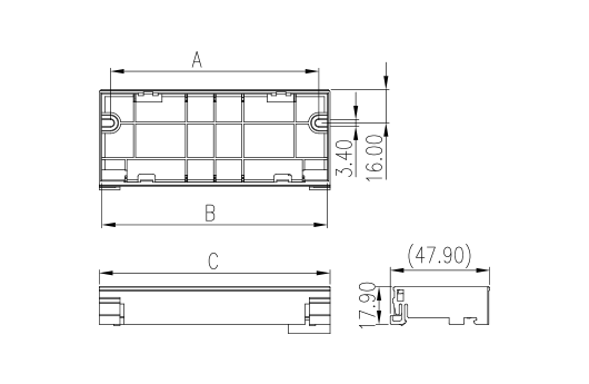 Готовая платформа для установки п/п (PCB) ширина 42 мм, длина 35,0 мм. Внешний размер: Ширина 47.9 мм, длина 38,2 мм, высота 17,9 мм. Высота с учетом установки на дин рейку TS-35 22,4 мм