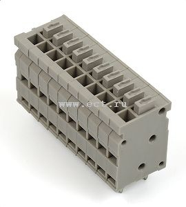 10 pin.шаг: 2.54мм, пров: 0.5 мм.кв, 150V, 5A, подключение Push in вертикальное, для п/п 2 ряда контактов, цвет: серый