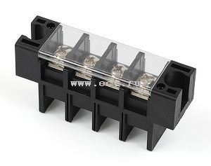 Клемма барьерная проходная. Шаг 11мм, 4 контакта. 300В, 30А, 0.5~6.0 мм2.Цвет черный.