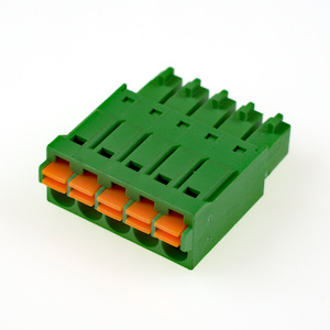 Клеммник разъемный - кабельная часть с пружинным подключением шаг 3,50 мм. Количество контактов: 5 UL: 300V/8A 24~16AWG; IEC: 250V/6A 0.5~1 мм.кв Длина зачистки проводов: 8 мм