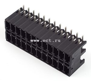 шаг: 3.50 мм, 300V, 8A, 24 конт., 2-х рядная разъемн. вилка платная горизонтальная. h = 15.2мм. Цвет черный.