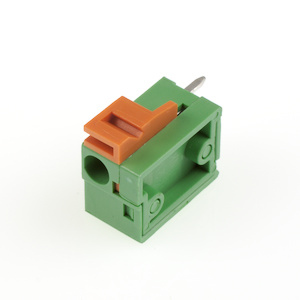 шаг: 5.08мм, пров: 1.50мм.кв, 300V, 10A, одиночная клемма / заглушка, фронт. подкл. пруж. тип с рычагом, вых. пров. вертик., h = 13.00мм