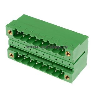 Клеммник разъемный горизонтальный двухрядный с винтовыми фиксаторами - платная часть. Количество контактов: 2x8. шаг: 5.08мм UL: 300V, 15A. IEC: 600V, 18A Высота = 28.40мм. Цвет: зеленый