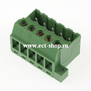 шаг: 5.08мм, пров: 2.50мм.кв, 300V, 12A, 5 конт., разъемн. вилка/розетка монт. на панель с креп. фланц., h = 17.00мм