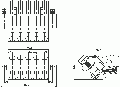 шаг: 5.08мм, пров: 2.50мм.кв, 300V, 15A, 11 конт., разъемн. розетка каб., винт и зажим провода под углом 45 град. к присоединительному контакту, с винт. фиксат., h = 15.40мм, цвет: зелёный