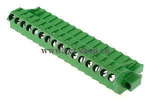 шаг: 5.08мм, пров: 2.50мм.кв, 300V, 15A, 16 конт., разъемн. розетка каб., винт и зажим провода под углом 45 град. к присоединительному контакту, с винт. фиксат., h = 15.40мм, цвет: зелёный