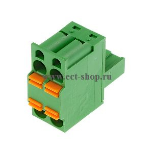 Клеммник пружинный разъемный - розетка двухрядная, кабельная часть. Шаг 5,08 мм. Количество контактов: 2 UL: 300V, 12A, 24~12 AWG. IEC: 250V, 12A, 0.5~2.5 мм.кв Цвет: зеленый