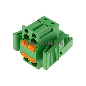 Клеммник пружинный разъемный - розетка двухрядная, кабельная часть с пластиковыми фиксаторами. Шаг 5,08 мм. Количество контактов: 2 UL: 300V, 12A, 24~12 AWG. IEC: 250V, 12A, 0.5~2.5 мм.кв Цвет: зеленый