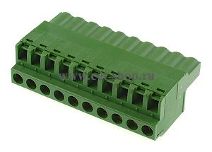 шаг: 5.08мм, пров: 2.50мм.кв, 300V, 15A, 10 конт., разъемная розетка кабельная с фронтальным подключением проводов под винт , h = 14.70мм, цвет: зеленый