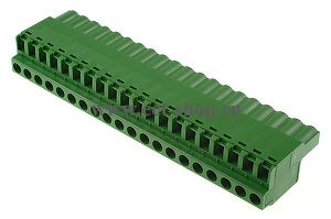 шаг: 5.08мм, пров: 2.50мм.кв, 300V, 15A, 20 конт., разъемная розетка кабельная с фронтальным подключением проводов под винт , h = 14.70мм, цвет: зеленый