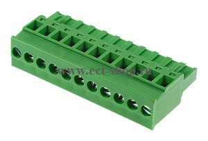 шаг: 5.08мм, пров: 2.50мм.кв, 300V, 15A, 11 конт., разъемная розетка кабельная вертикальная под винт. фиксаторы со стороны подключения проводов., h = 26.05мм, цвет: зеленый