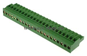 шаг: 5.08мм, пров: 2.50мм.кв, 300V, 15A, 22 конт., разъемная розетка кабельная вертикальная под винт. фиксаторы со стороны подключения проводов., h = 26.05мм, цвет: зеленый