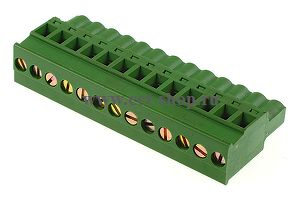 шаг: 5.08мм, пров: 2.50мм.кв, 300V, 15A, 13 конт., разъемная розетка кабельная вертикальная под винт. фиксаторы 180 град от подключения проводов., h = 26.05мм, цвет: зеленый