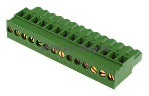 шаг: 5.08мм, пров: 2.50мм.кв, 300V, 15A, 14 конт., разъемная розетка кабельная вертикальная под винт. фиксаторы 180 град от подключения проводов., h = 26.05мм, цвет: зеленый