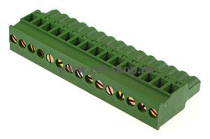 шаг: 5.08мм, пров: 2.50мм.кв, 300V, 15A, 15 конт., разъемная розетка кабельная вертикальная под винт. фиксаторы 180 град от подключения проводов., h = 26.05мм, цвет: зеленый