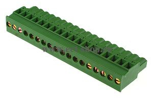 шаг: 5.08мм, пров: 2.50мм.кв, 300V, 15A, 18 конт., разъемная розетка кабельная вертикальная под винт. фиксаторы 180 град от подключения проводов., h = 26.05мм, цвет: зеленый