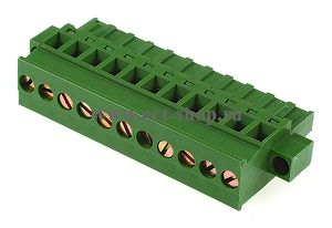 шаг: 5.08мм, пров: 2.50мм.кв, 300V, 15A, 11 конт., разъемная розетка кабельная вертикальная под винт, с дополнительными винтовыми фиксаторами. фиксаторы присоединения к ответной части со стороны подключения проводов., h = 26.05мм, цвет: зеленый