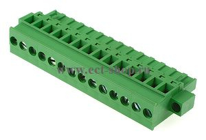 шаг: 5.08мм, пров: 2.50мм.кв, 300V, 15A, 14 конт., разъемная розетка кабельная вертикальная под винт, с дополнительными винтовыми фиксаторами. фиксаторы присоединения к ответной части со стороны подключения проводов., h = 26.05мм, цвет: зеленый