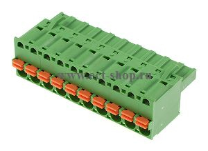 шаг: 5.08мм, пров: 2.50мм.кв, 300V, 15A, 10 контактная., разъемная розетка кабельная вертикальная с пружинным подключением проводов, h = 25.60мм, цвет: зеленый.