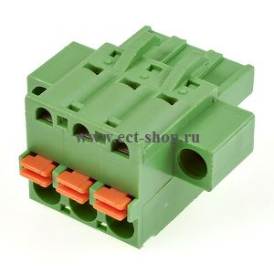шаг: 5.08мм, пров: 2.50мм.кв, 300V, 15A, 3 контактная., разъемная розетка кабельная вертикальная с пружинным подключением проводов, дополнительными винтовыми фиксаторами к ответной части. h = 25.60мм, цвет: зеленый
