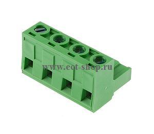 шаг: 7.62мм, провода: 0.2~4.0 мм.кв, 300V, 15A, 4 контактная разъемная розетка кабельная угловая, h = 15.00мм, цвет: зеленый