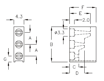 Вертикальный держатель с фиксацией для 3-х (2pin) светодиодов по 3 мм. Материал: Нейлон 66 94V-2, Цвет: черный.