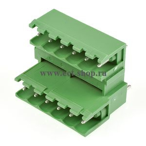 Клеммник разъемный вертикальный двухуровневый со смещением второго ряда влево - платная часть. Количество контактов: 2x6. шаг: 5.00 мм UL: 300V, 15A. IEC: 600V, 18A Высота = 22.00мм. Цвет: зеленый