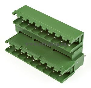 Клеммник разъемный вертикальный двухуровневый со смещением второго ряда влево - платная часть. Количество контактов: 2x9. шаг: 5.00 мм UL: 300V, 15A. IEC: 600V, 18A Высота = 22.00мм. Цвет: зеленый
