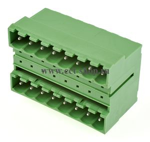 Клеммник разъемный горизонтальный двухрядный - платная часть. Количество контактов: 2x8. шаг: 5.00 мм UL: 300V, 15A. IEC: 600V, 18A Высота = 28.40мм. Цвет: зеленый