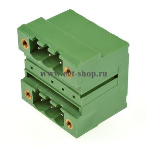 Клеммник разъемный горизонтальный двухрядный с винтовыми фиксаторами - платная часть. Количество контактов: 2x3. шаг: 5.00 мм UL: 300V, 15A. IEC: 600V, 18A Высота = 28.40мм. Цвет: зеленый