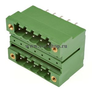 Клеммник разъемный вертикальный двухрядный с винтовыми фиксаторами - платная часть. Количество контактов: 2x5. шаг: 5.00 мм UL: 300V, 15A. IEC: 600V, 18A Высота = 22.00мм. Цвет: зеленый