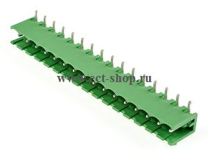 шаг: 5.00мм, 300V, 15A, 16 конт., разъемн. вилка платная горизонтальная, h = 8.32мм, цвет: зеленый