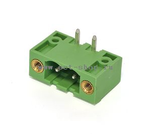 шаг: 5.00мм, 300V, 15A, 2 конт., разъемн. вилка платная горизонтальная с винтовыми фиксаторами, h = 8.32мм, цвет: зеленый