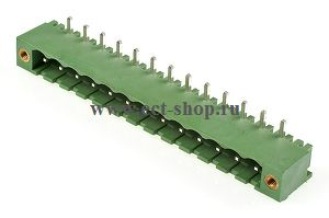 шаг: 5.00мм, 300V, 15A, 13 конт., разъемн. вилка платная горизонтальная с винтовыми фиксаторами, h = 8.32мм, цвет: зеленый