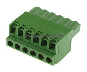 шаг: 5.00мм, пров: 2.50мм.кв, 300V, 15A, 6 конт., разъемн. розетка кабельная фронтальная, винты со стороны подключения проводов, h = 14.70мм, цвет: зеленый