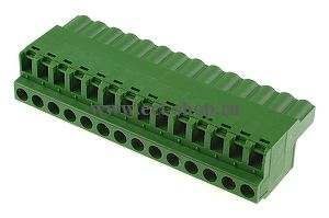 шаг: 5.00мм, пров: 2.50мм.кв, 300V, 15A, 14 конт., разъемн. розетка кабельная фронтальная, винты со стороны подключения проводов, h = 14.70мм, цвет: зеленый