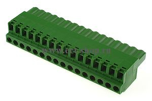 шаг: 5.00мм, пров: 2.50мм.кв, 300V, 15A, 16 конт., разъемн. розетка кабельная фронтальная, винты со стороны подключения проводов, h = 14.70мм, цвет: зеленый
