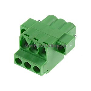 шаг: 5.00мм, пров: 2.50мм.кв, 300V, 15A, 3 конт., разъемная розетка кабельная фронтальная, винты со стороны подключения проводов, с винтовыми фиксаторами. h = 14.70мм, цвет: зеленый