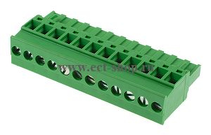 шаг: 5.00мм, пров: 2.50мм.кв, 300V, 15A, 12 конт., разъемная розетка кабельная вертикальная, фиксаторы к ответной части со стороны подключения проводов, h = 26.05мм, цвет: зеленый