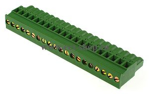 шаг: 5.00мм, пров: 2.50мм.кв, 300V, 15A, 20 конт., разъемная розетка кабельная вертикальная, фиксаторы к ответной части с противоположной стороны подключения проводов, h = 26.05мм, цвет: зеленый
