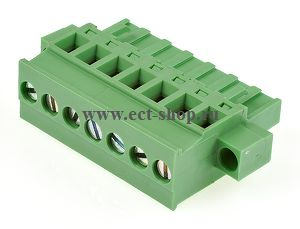 шаг: 5.00мм, пров: 2.50мм.кв, 300V, 15A, 7 конт., разъемная розетка кабельная вертикальная, фиксаторы к ответной части со стороны подключения проводов, дополнительные винтовые фиксаторы. h = 26.05мм, цвет: зеленый