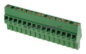 шаг: 5.00мм, пров: 2.50мм.кв, 300V, 15A, 15 конт., разъемн. розетка каб.вертик. кл. со стор. пров., h = 26.05мм, модель снята с производства