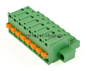 шаг: 5.00мм, пров: 2.50мм.кв, 300V, 10A, 15 контактная., разъемная розетка кабельная вертикальная с пружинным подключением проводов. Дополнительные винтовые фиксаторы. h = 25.65мм, цвет: зеленый