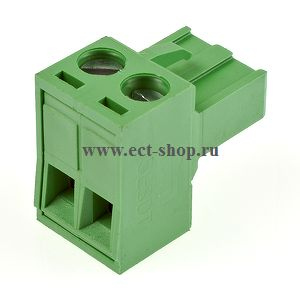 шаг: 5.00мм, пров: 2.50мм.кв, 300V, 15A, 2 конт., разъемная розетка кабельная угловая со смещением, h = 15.00мм, цвет: зеленый