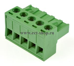 шаг: 5.00мм, пров: 2.50мм.кв, 300V, 15A, 5 конт., разъемная розетка кабельная угловая со смещением, h = 15.00мм, цвет: зеленый