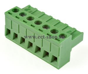шаг: 5.00мм, пров: 2.50мм.кв, 300V, 15A, 7 конт., разъемная розетка кабельная угловая со смещением, h = 15.00мм, цвет: зеленый