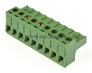 шаг: 5.00мм, пров: 2.50мм.кв, 300V, 15A, 9 конт., разъемная розетка кабельная угловая со смещением, h = 15.00мм, цвет: зеленый