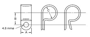 Держатель кабеля под винт. Материал: полиамид 66. Цвет: черный. Отверстие под винт 4.8 мм. A = 9.4 mm, B = 10 mm, C = 4.6 mm. Аналог KSS UC-0.5B