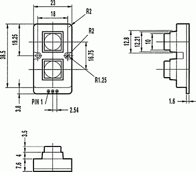 Клавиатура металлическая, водонепроницаемая, кол-во кнопок 1х2 (стрелки), разм.: 23 х 38.5 мм, цвет: серебристый