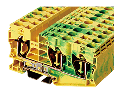 Пружинная трехконтактная клемма заземления на Дин рейку. UL: 24~6 AWG, IEC: 1.5~10 мм.кв, Размеры: 10х49,3х96,8 мм, Материал: полиамид. Длина зачистки проводов: 18 мм. Цвет: желто-зеленый. Функционально совместимы с клемма Wago 2006-1307